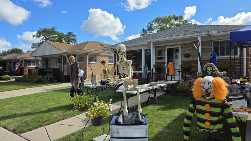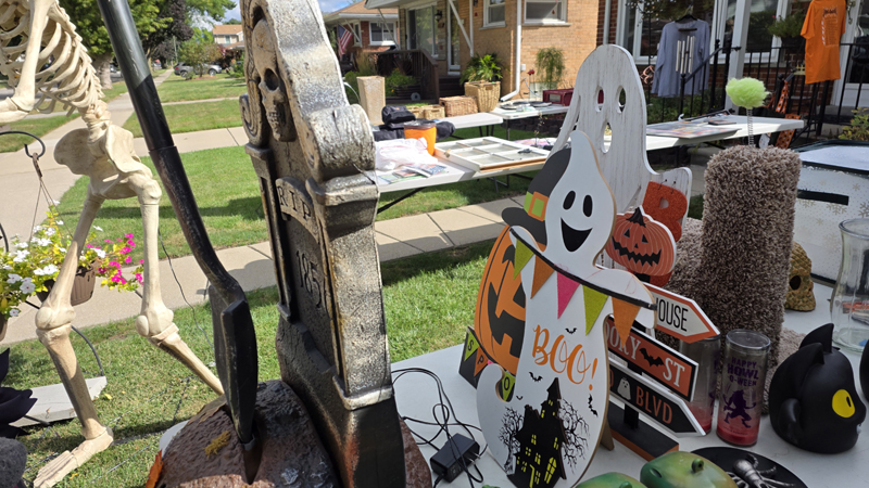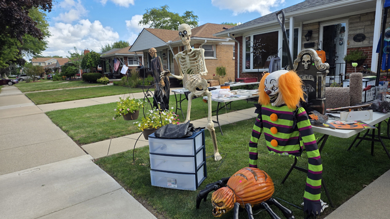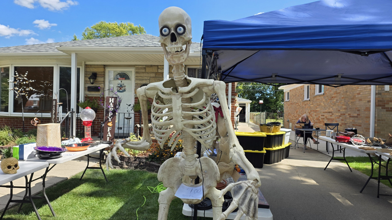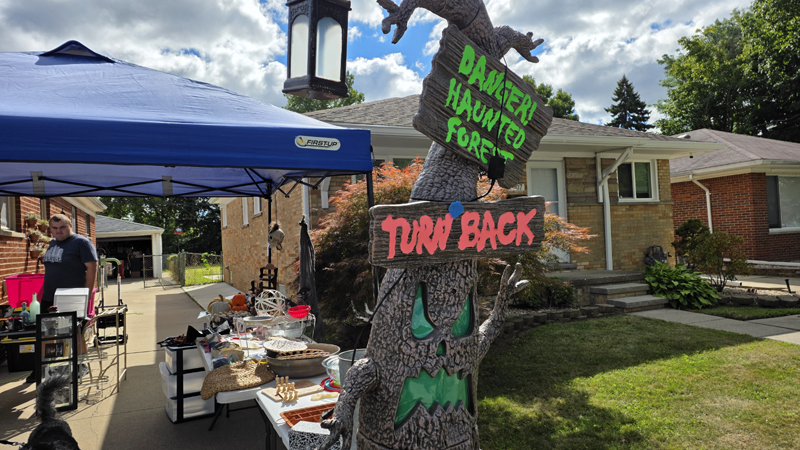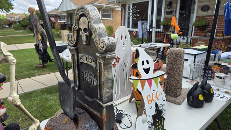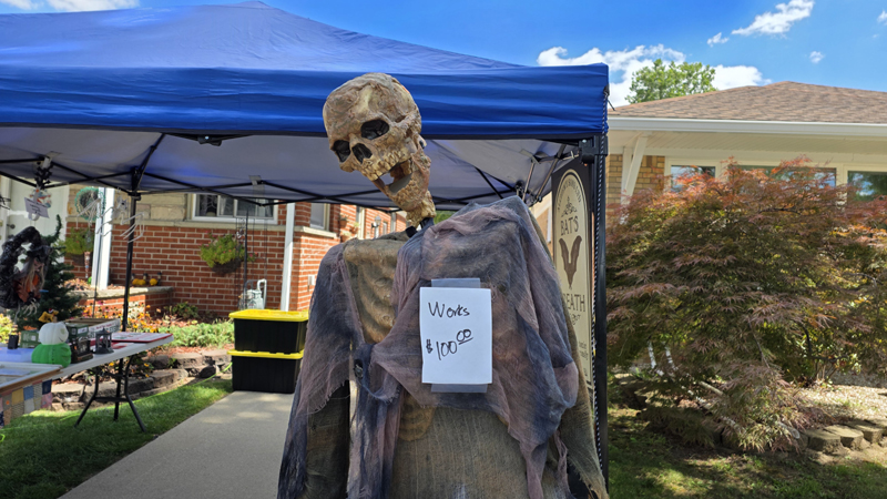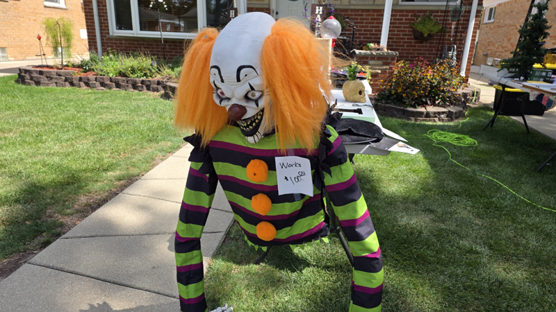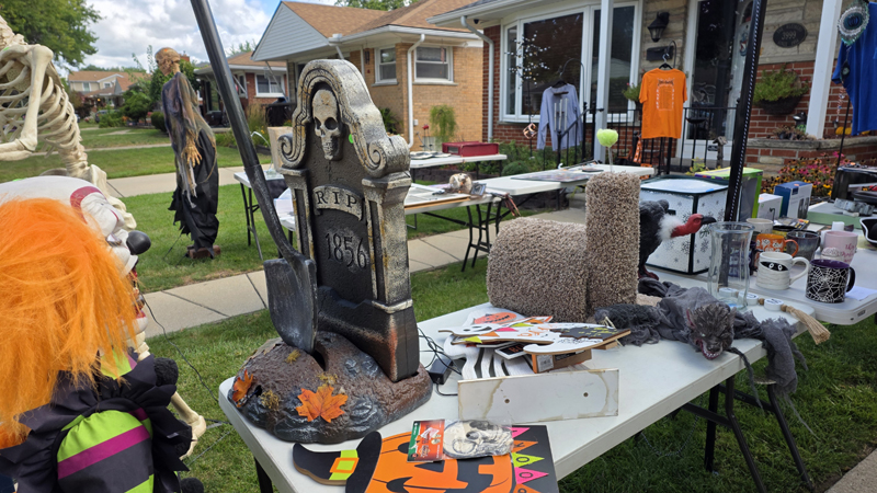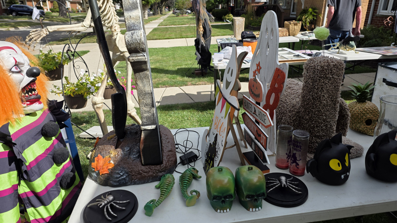 Once again we held a garage sale and once again we sold off Halloween props to help pay for the new ones coming out next month. This means our garage sale has a creepy look to it despite selling many of the standard things you would find at any garage sale.