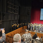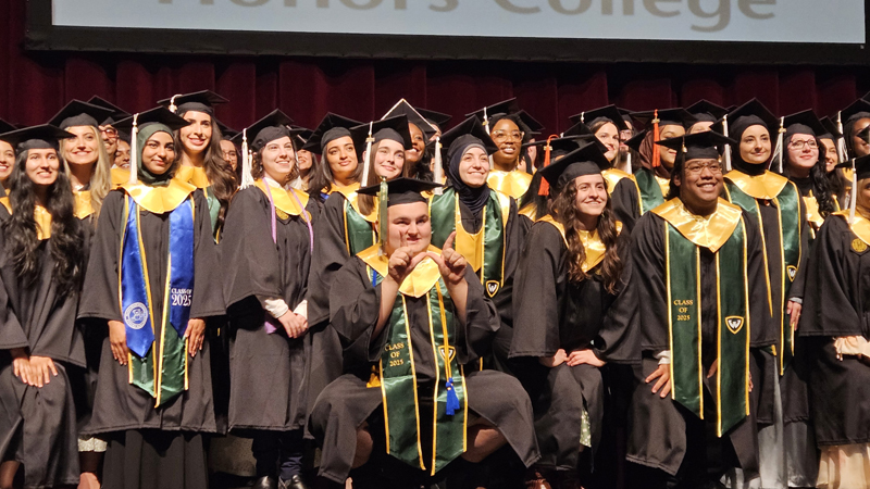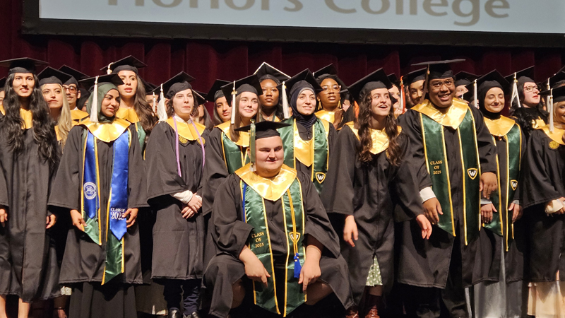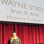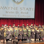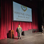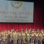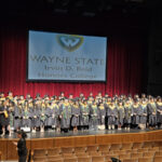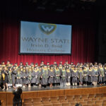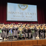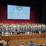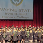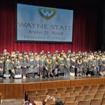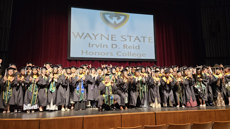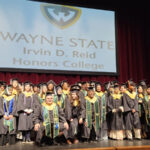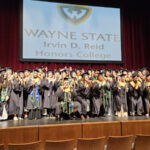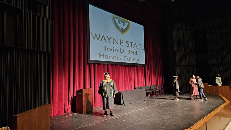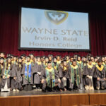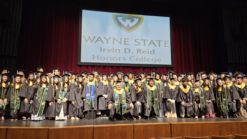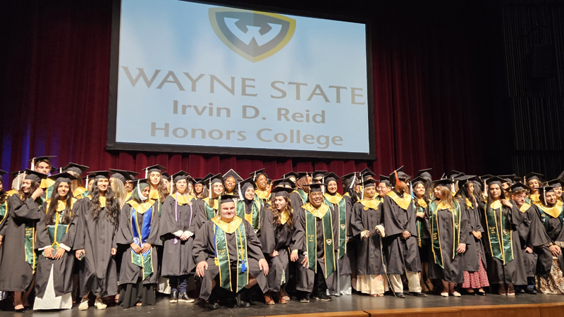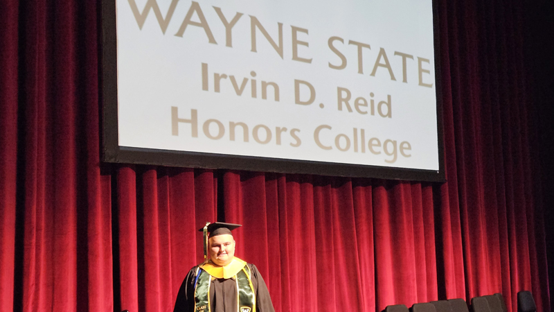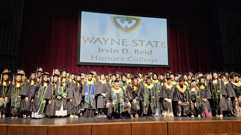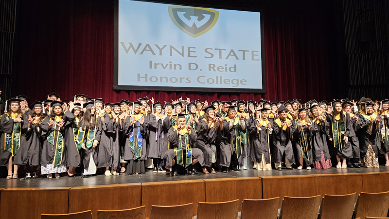 James had 3 graduations in 2 days. The first was the Honors Graduation which took place a day before the other two. The idea is that the honor students would receive their awards and banners so that they could wear them the next day at their other graduations. This graduation was done in a theater on the Wayne State Campus and was very well done and the speakers were very good and not too long winded. James and the other honor grads stuck around after the ceremony to take some group pictures, Hopefully they turn out ok, but just in case we thought that we would take some too.